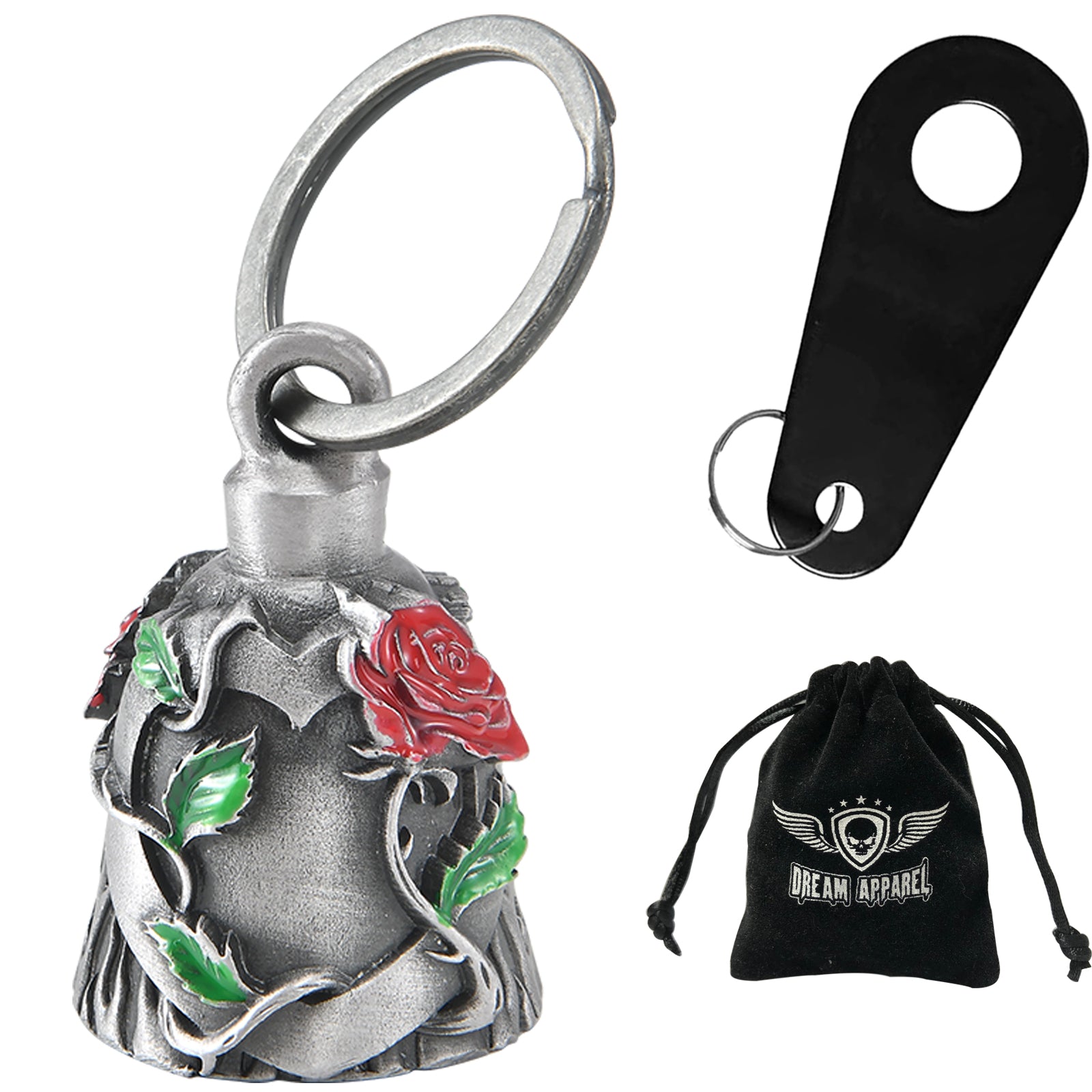 • Dream Apparel Heart with Red Rose Motorcycle Bell, for Good Luck and in 3-D, Light Weight