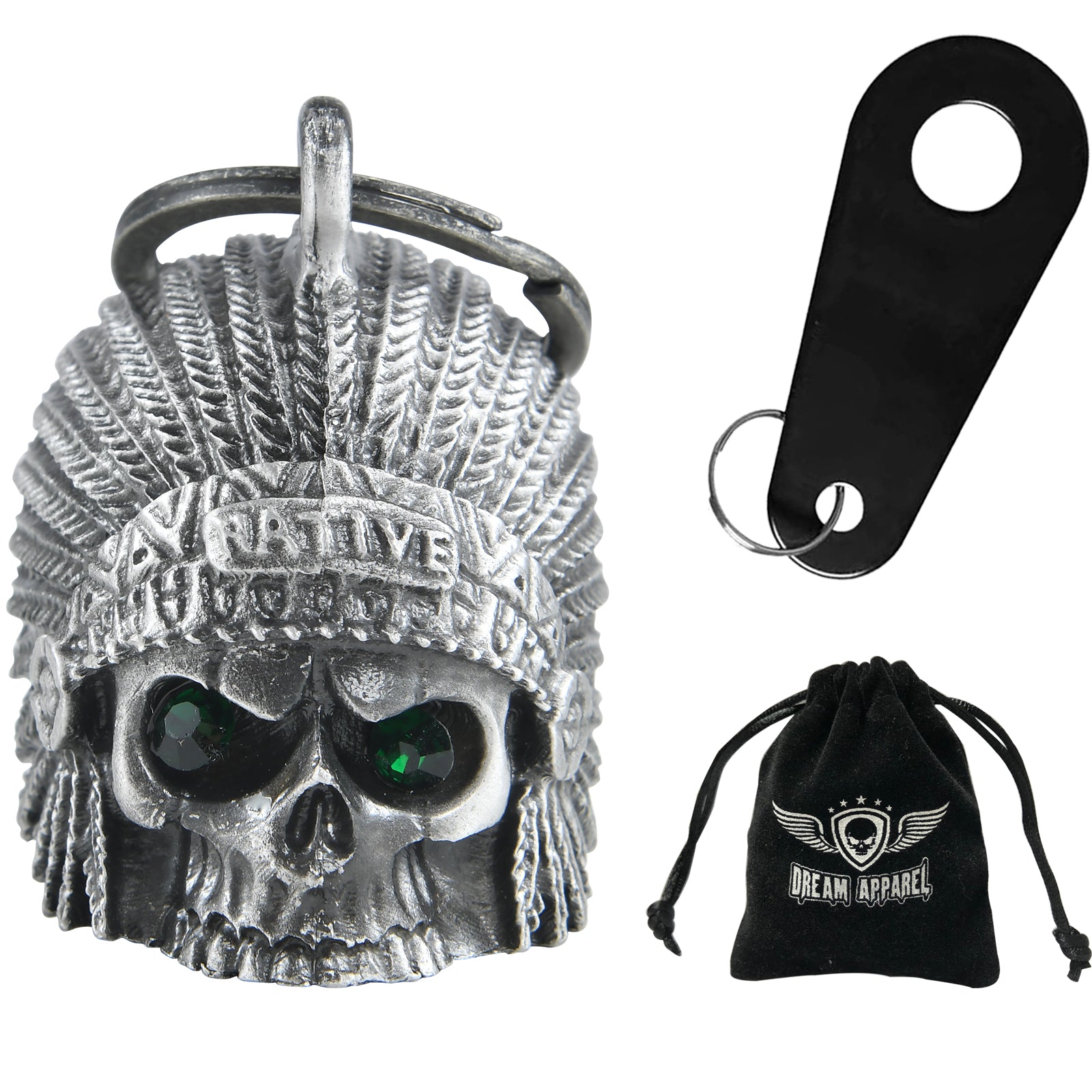 Dream Apparel Indian Skull Head Green Eyes Motorcycle Bell, for Good Luck 3-D, Light Weight