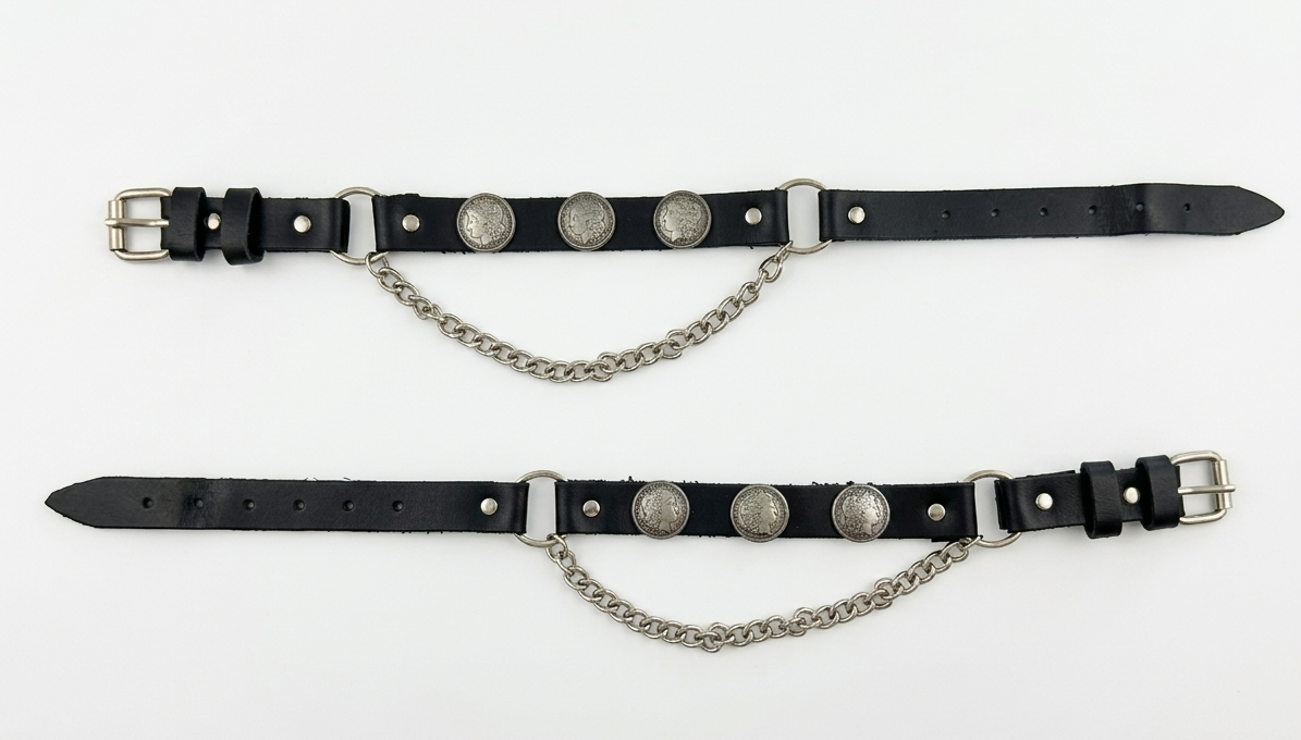 Dream Apparel Black Leather Biker Boot Chains with 1881 Morgan Dollar Coin Replica Accents is backordered and will ship as soon as it is back in stock.