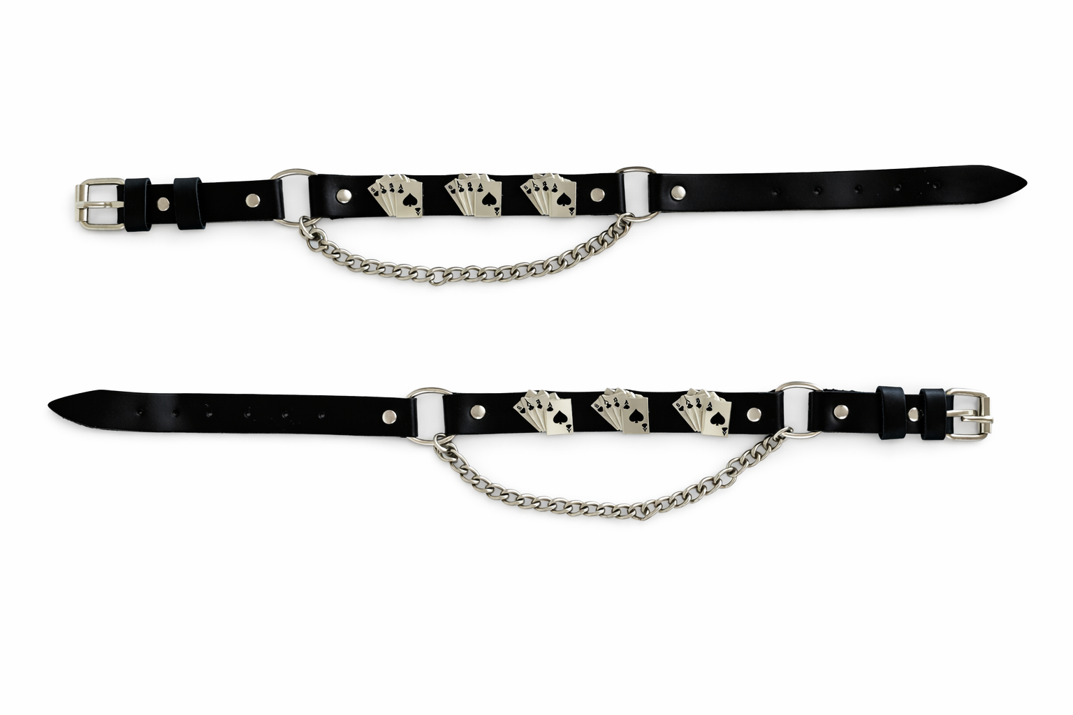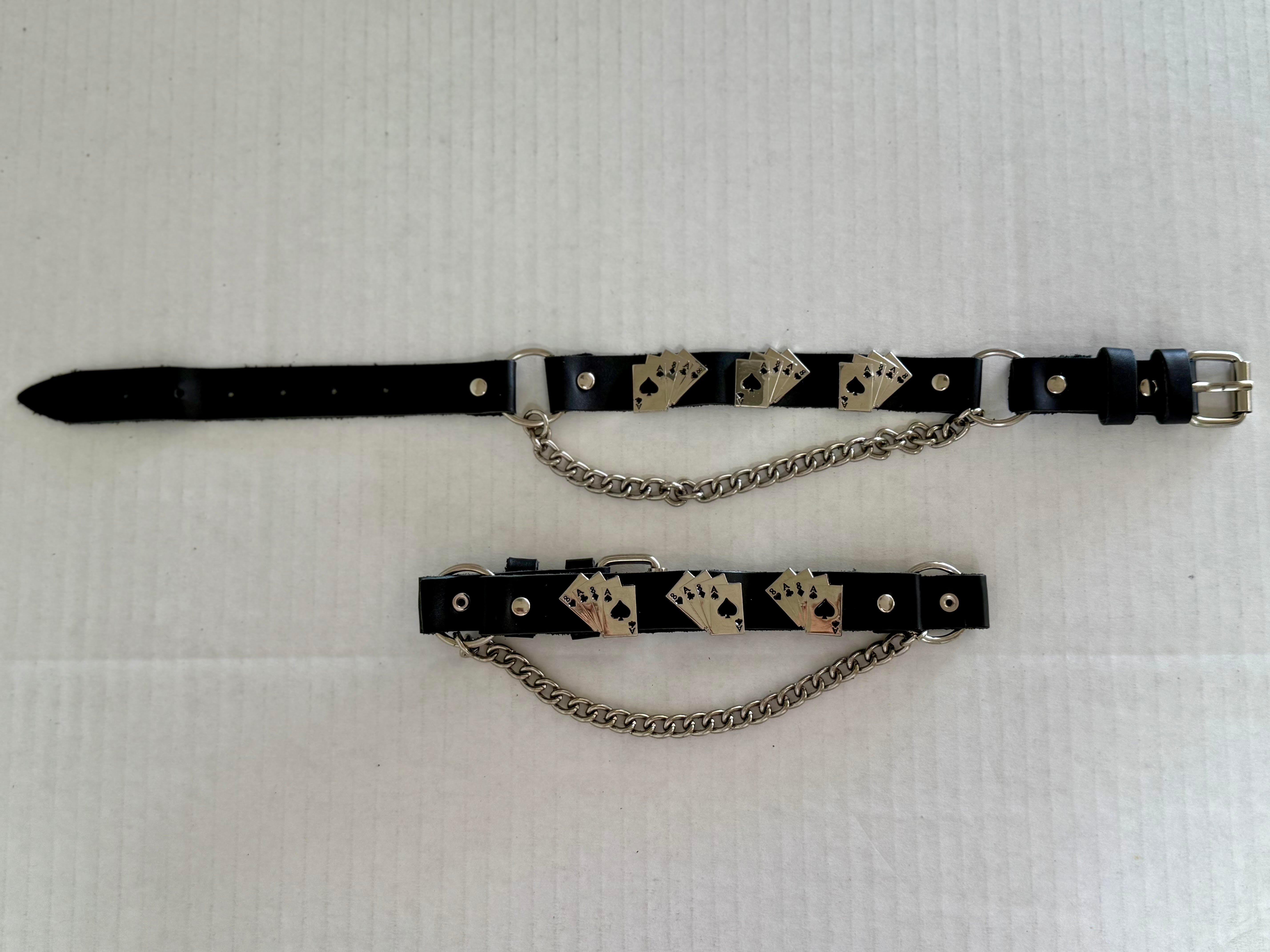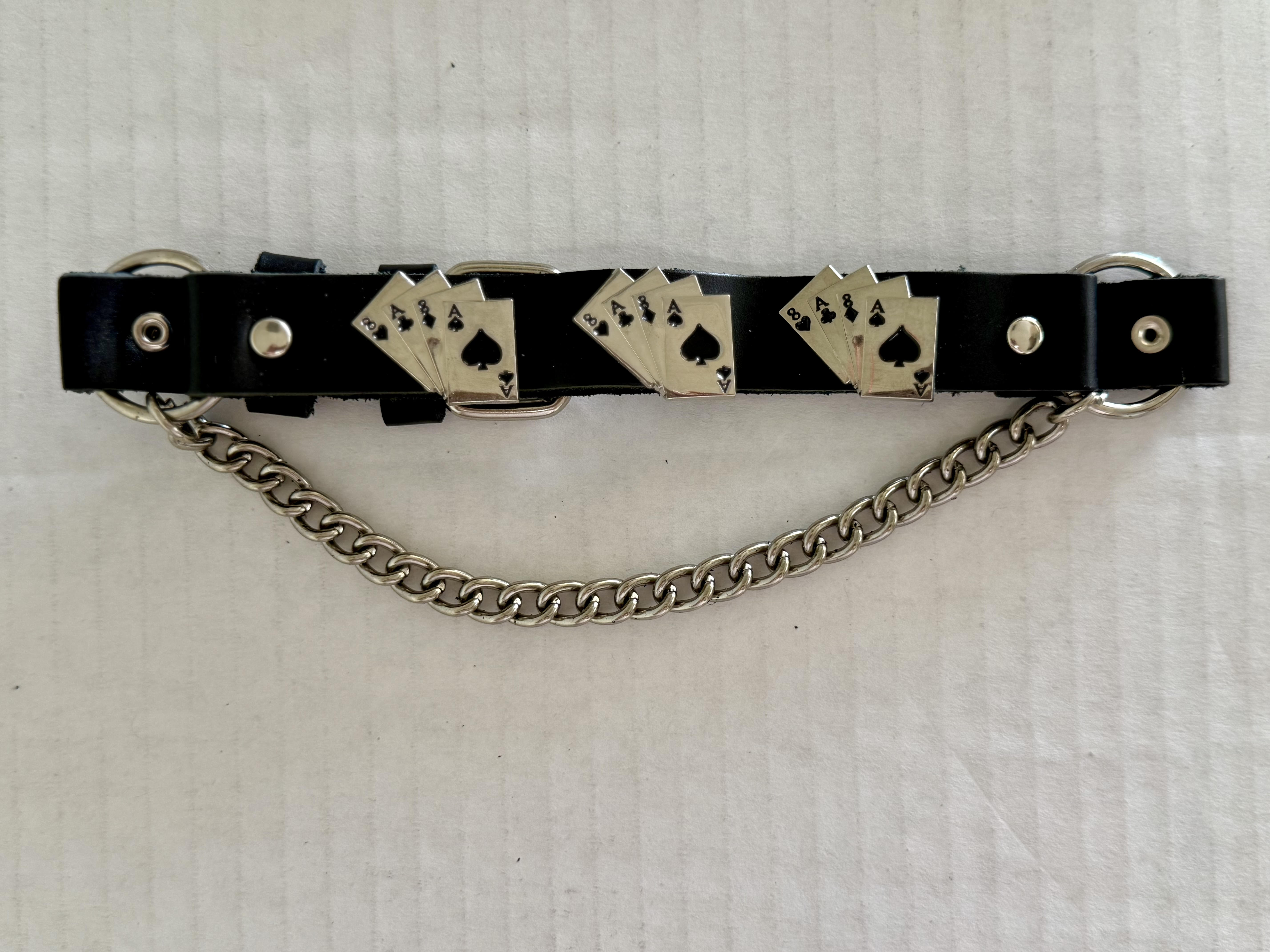 Boot chains have become a great accessory when you're looking to add to your style, and Dream Apparel's always down to help. Our boot chain features three beautiful deadman's hand designs. Crafted absolutely stunningly, it is not only an eye-catcher but comfortable as well. The leather like PVC belt is sturdy and durable while the chrome chain makes it an easy fit for just about anyone. Putting comfortability and style as the top priorities, this chain is no doubt a must have especially for the bike community.