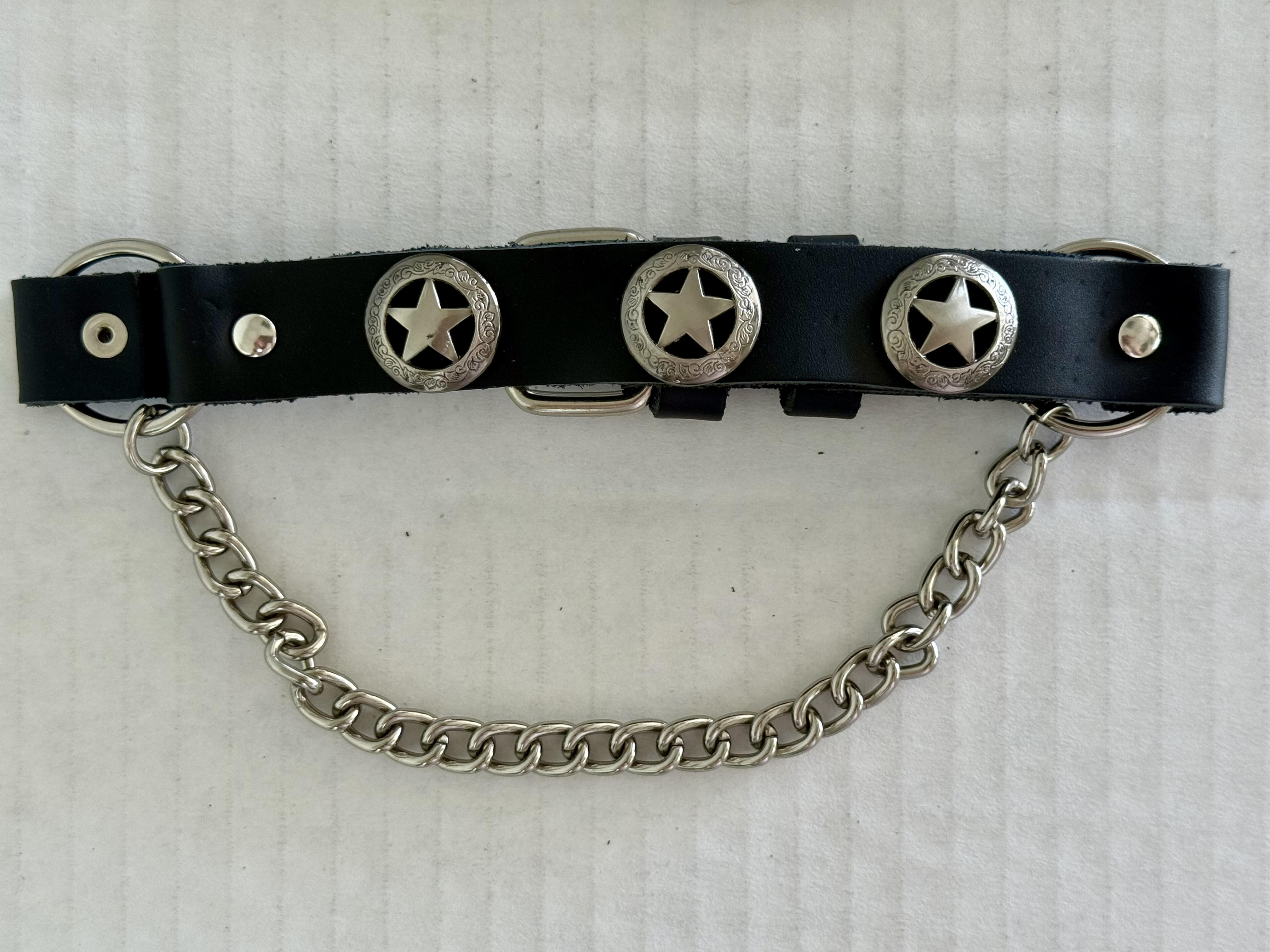 Boot chains have become a great accessory when you're looking to add to your style, and Dream Apparel's always down to help. Our boot chain features three beautiful Texas stars. Crafted absolutely stunningly, it is not only an eye-catcher but comfortable as well. The leather like PVC belt is sturdy and durable while the chrome chain makes it an easy fit for just about anyone. Putting comfortability and style as the top priorities, this chain is no doubt a must have especially for the bike community.