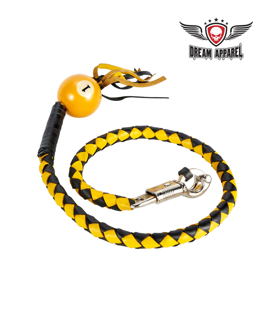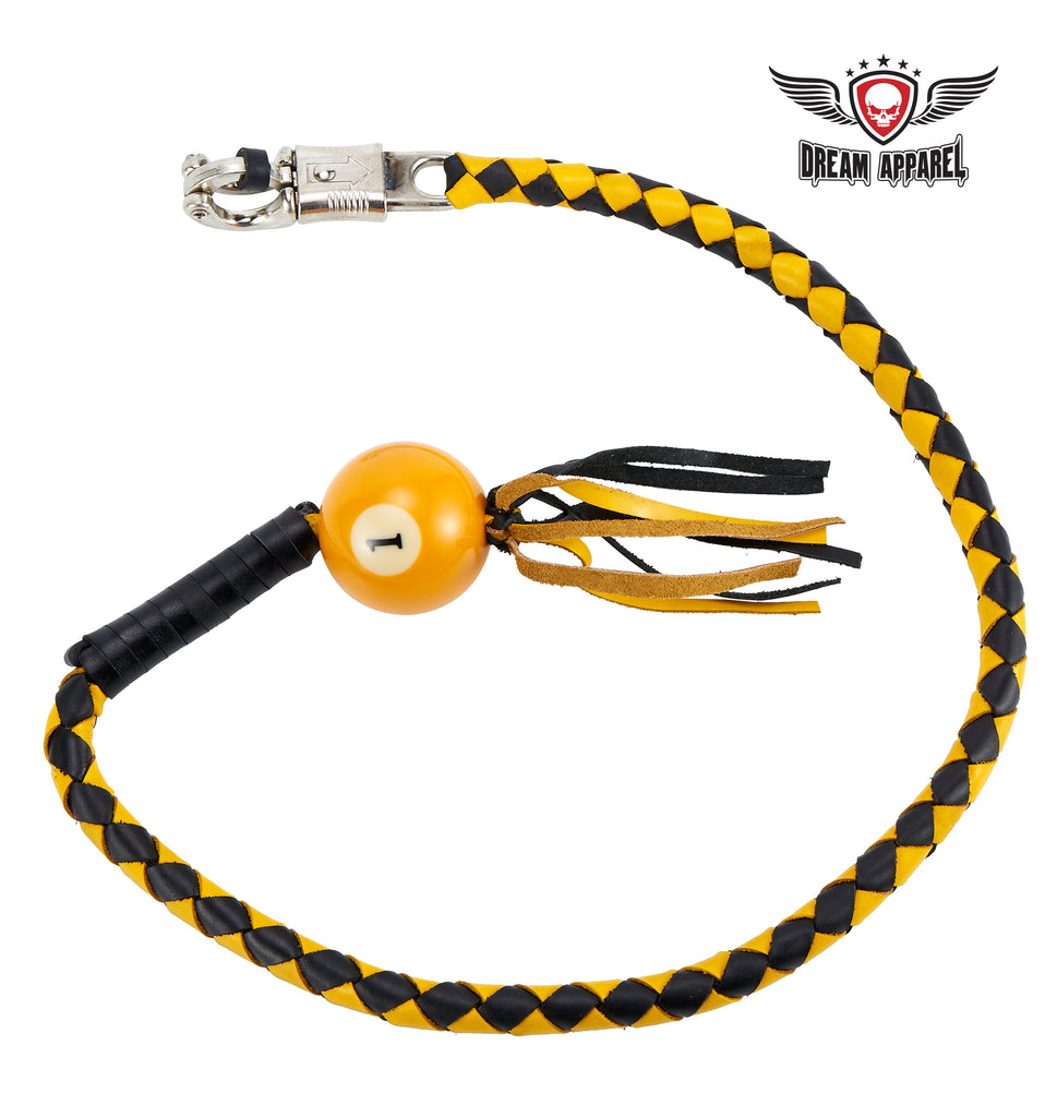 Dream Apparel 36" Long Black And Yellow Fringed Get Back Whip With Pool Black Ball 8