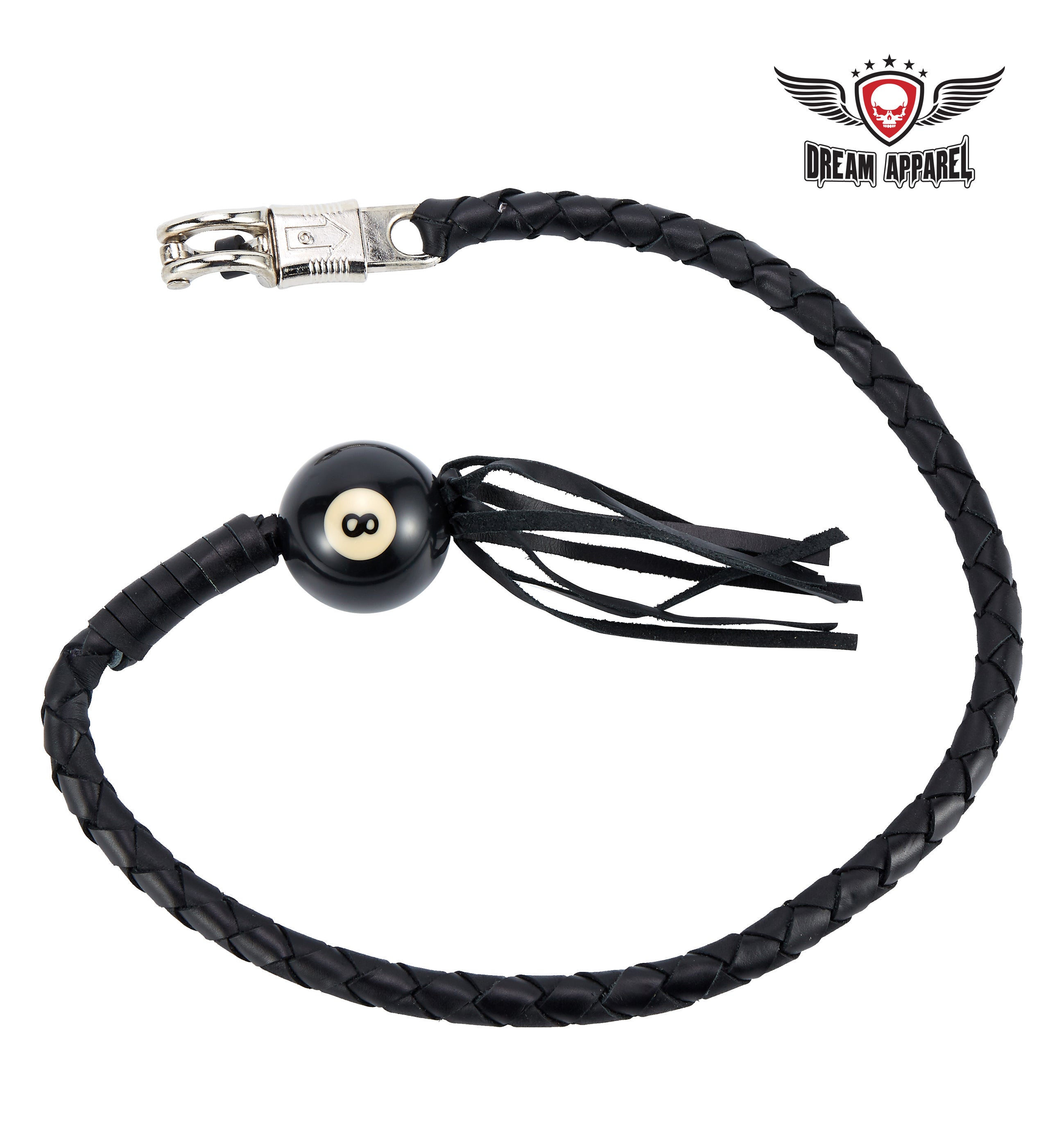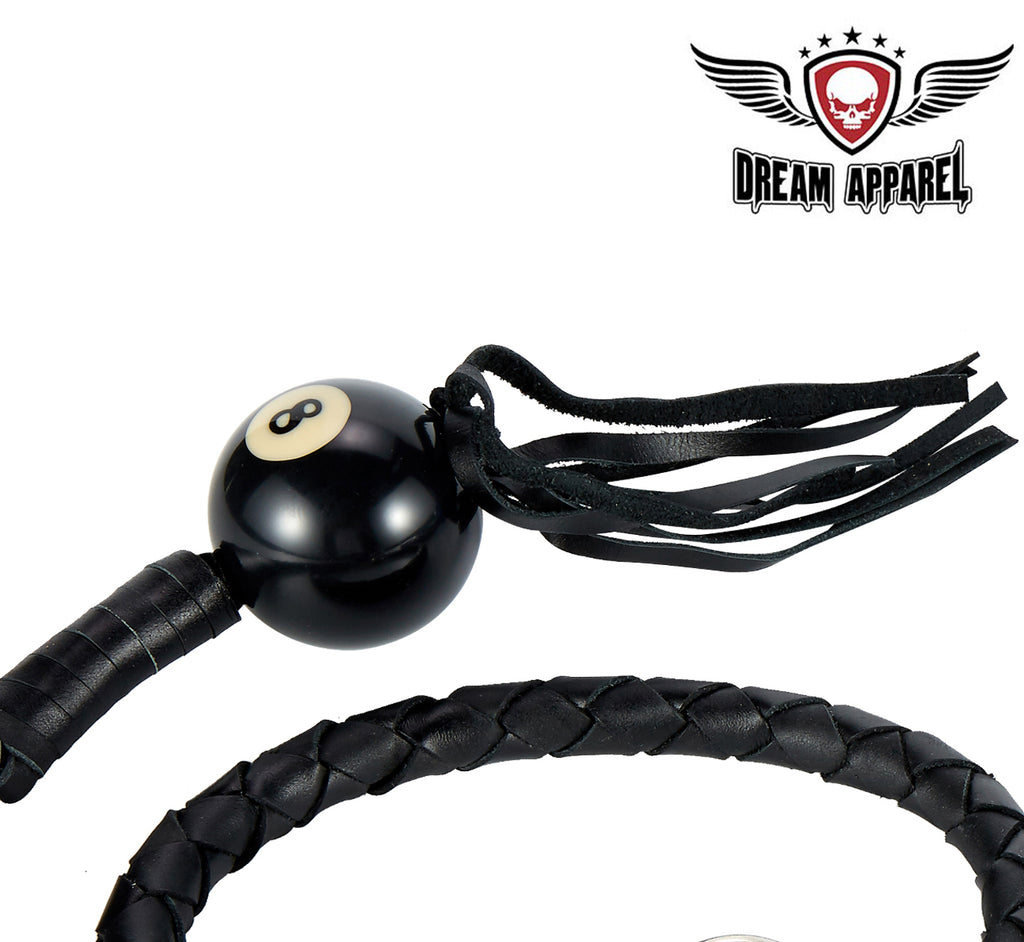 Dream Apparel 42" Long Black Fringed Get Back Whip With Black Pool Ball 8