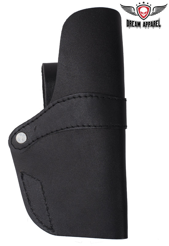 - Smooth leather finish w/ generic shape to fit most small and mid-sized handguns