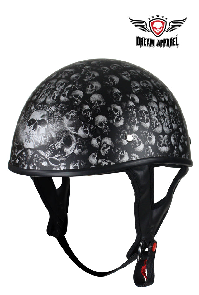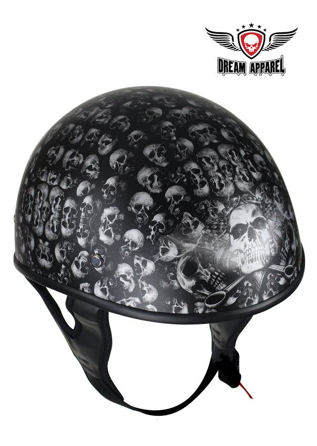 DOT Low Profile Motorcycle Helmet With Skulls Graphic