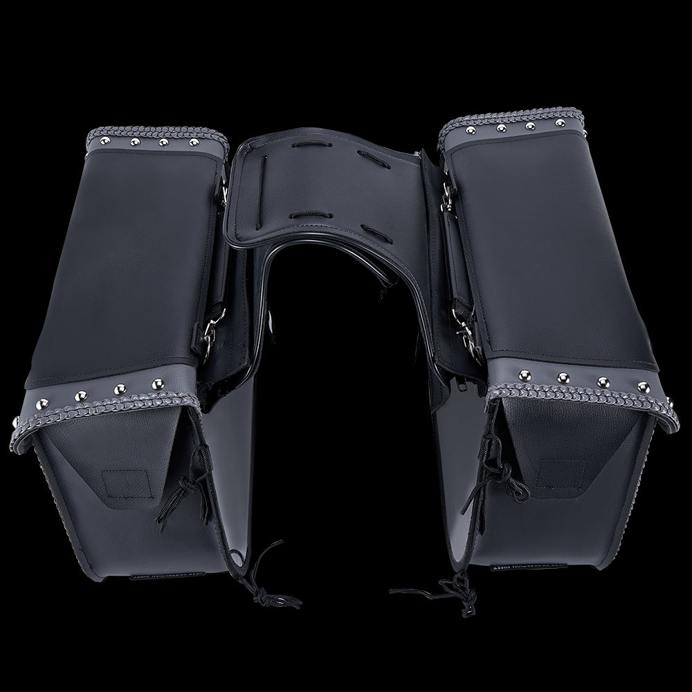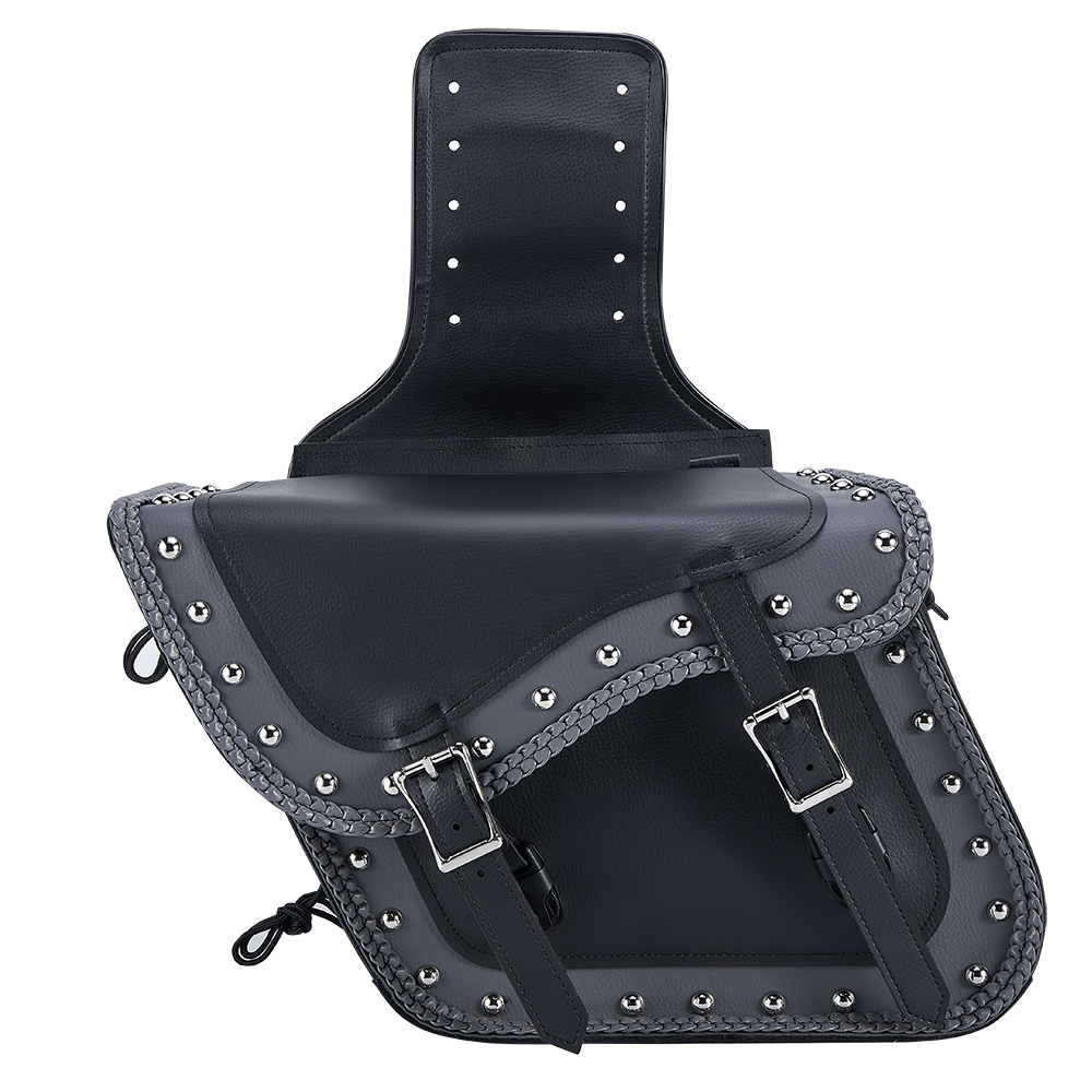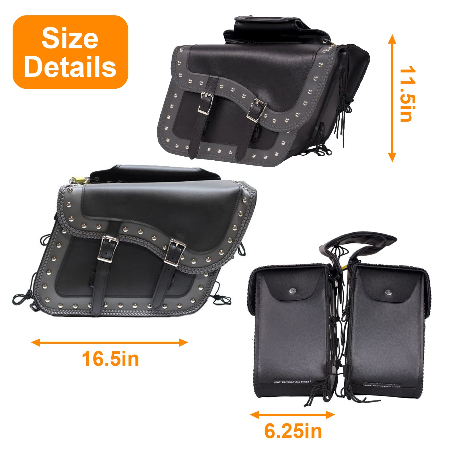 Our motorcycle saddlebag can hold a lot of items. The velcro cover that covers the lock will keep your items from flying out during the ride.