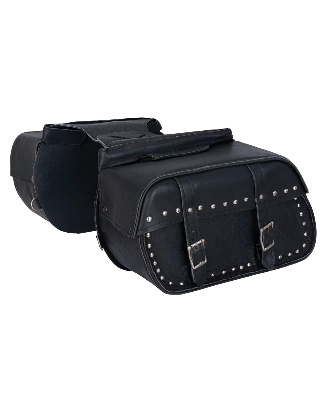Dream Apparel Black Motorcycle Leather Saddlebags with Studs is backordered and will ship as soon as it is back in stock.
