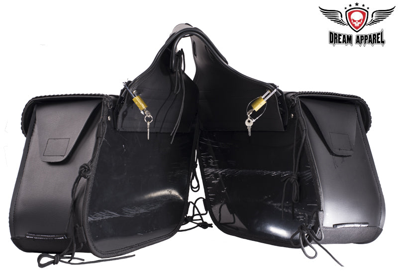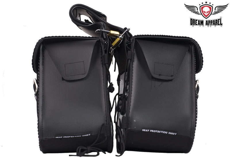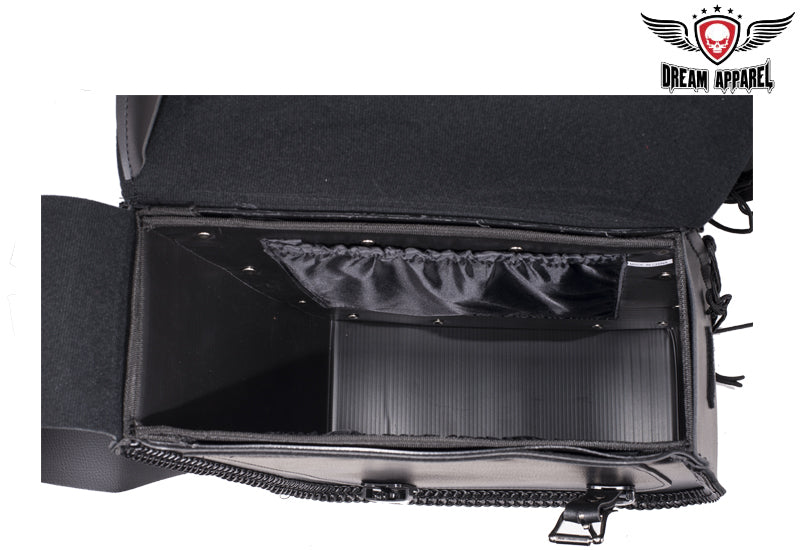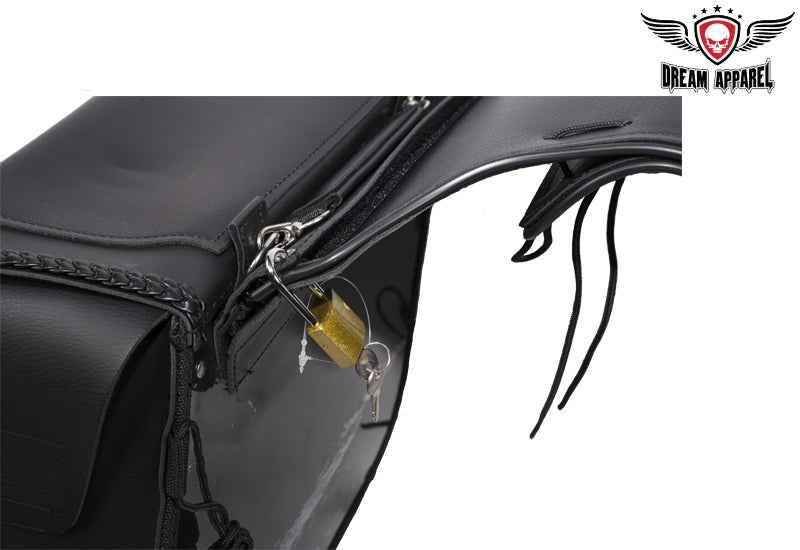 This motorcycle saddlebag is one of our top selling items but the stud version of the bag. Now you are able to pick if you want the stud version or no stud version. This motorcycle saddlebag features zipoff with heavy duty cover, universal fitting, hard sheet, heavy duty qiuck release, 100% waterproof, and we guarantee it will hold its shape.