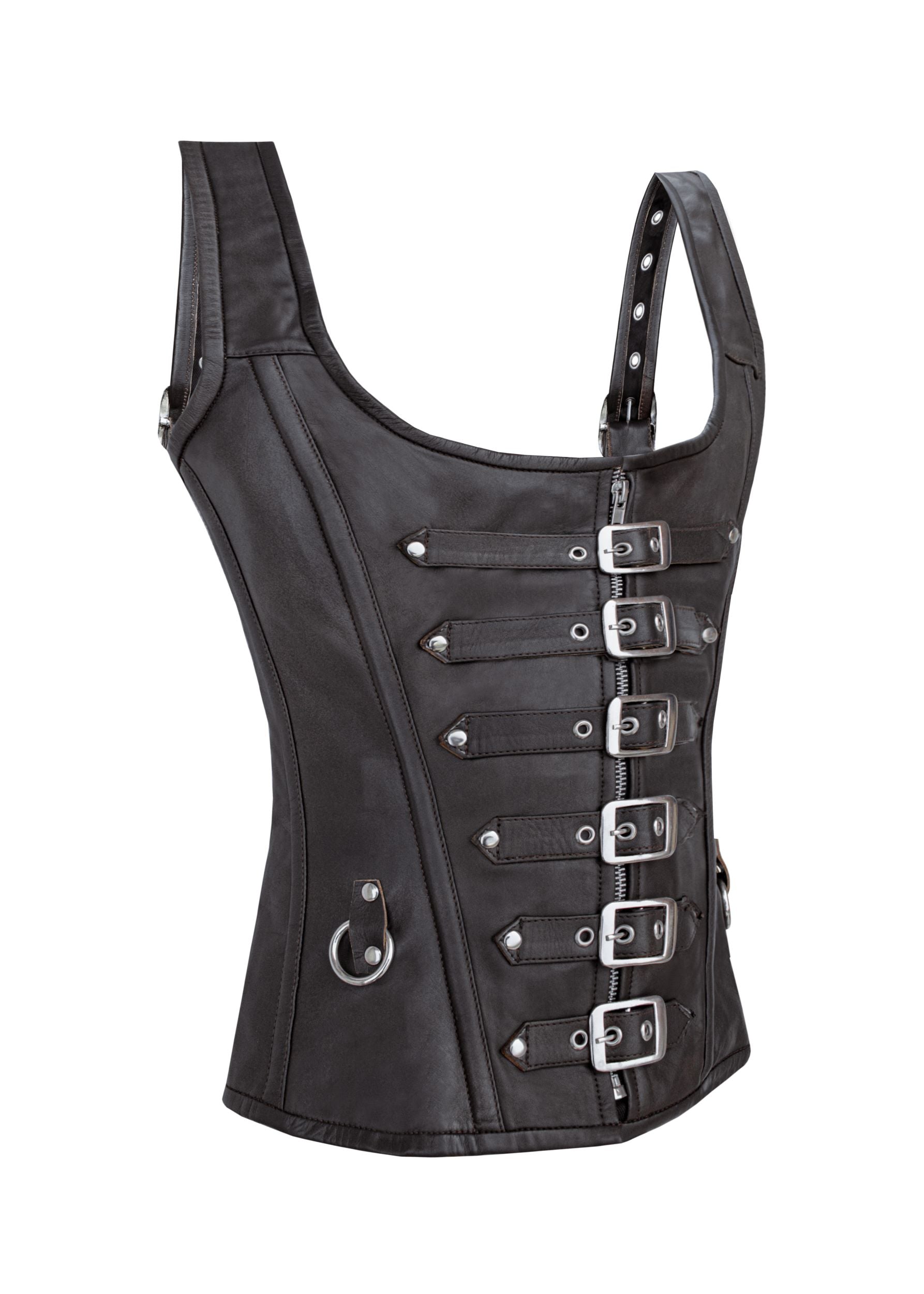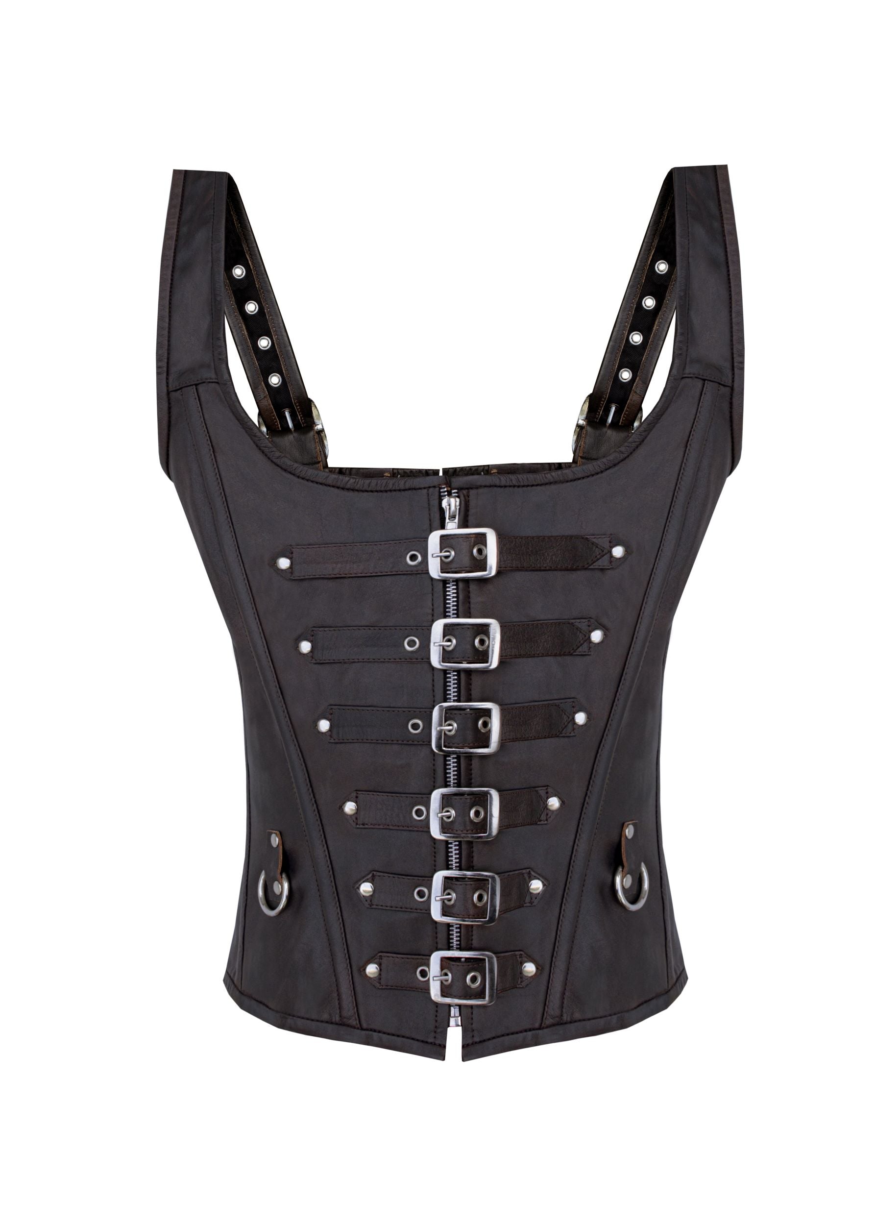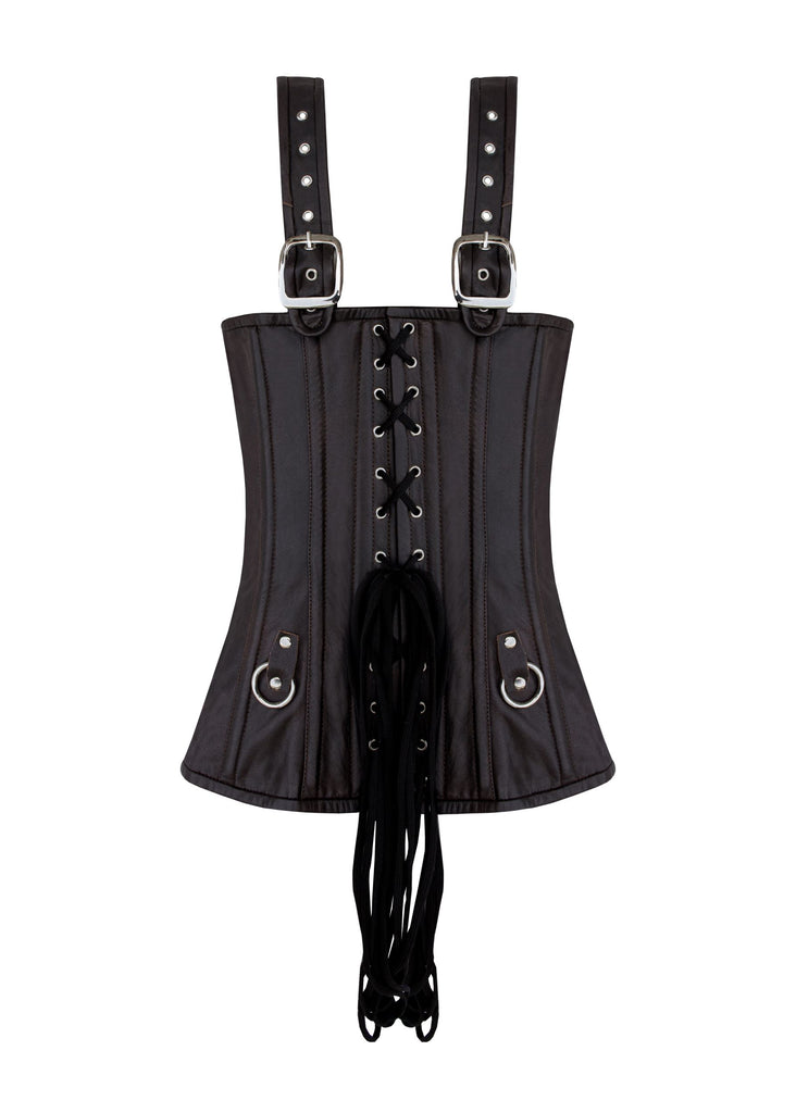 Dream Apparel Leather Ladies Bustier Top Brown - S is backordered and will ship as soon as it is back in stock.